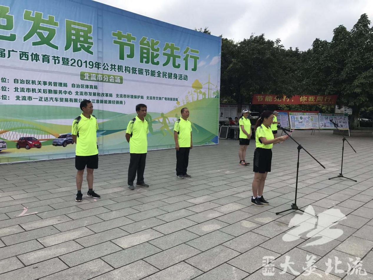 2019年6月17日上午,第十一届广西体育节暨2019年公共机构低碳节能全民健身活动北流分会场活动启动仪式在北流市区瓦窑头公园举行。北流市委常委、常务副市长李彦参加活动。