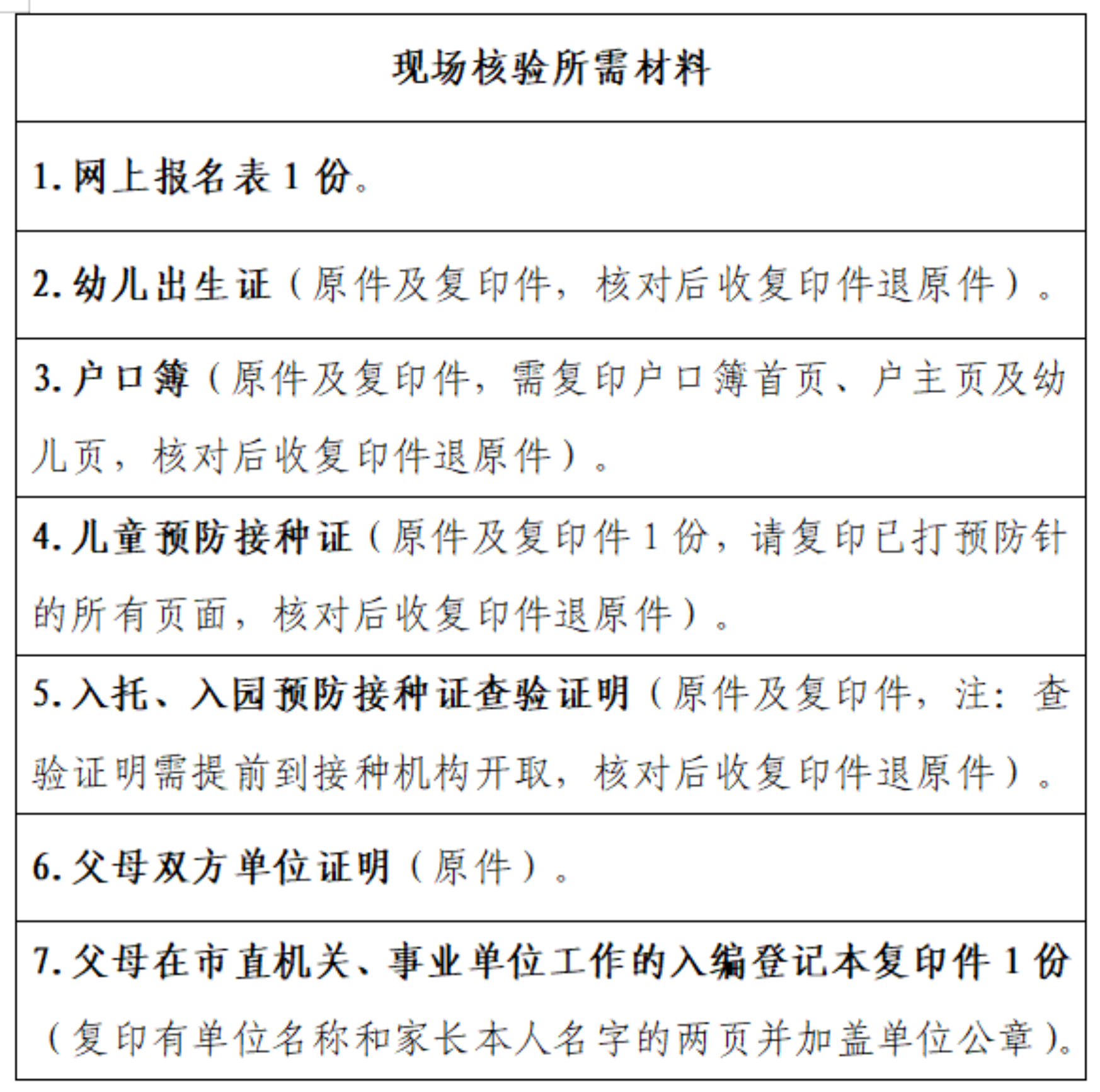 (三)现场咨询、核验材料、办理录取手续,每个家庭仅限1名法定监护人入园。